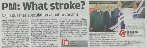 KUALA LUMPUR: Datuk Seri Najib Tun Razak has quashed talk that he suffered a stroke over the weekend, stressing that he is in good health.